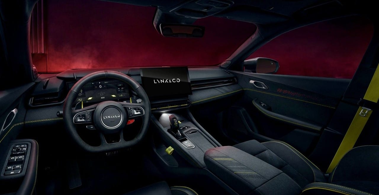 Lynk&Co 03+ có thiết kế nội thất mang ADN đặc trưng của thương hiệu Lynk&Co với những chi tiết trẻ trung hiện đại. Nhưng ở phiên bản 03+ có thêm những chi tiết mang đậm chất của một mẫu xe thể thao như: trần da lộn màu đen, vô lăng D-Cut thể thao.